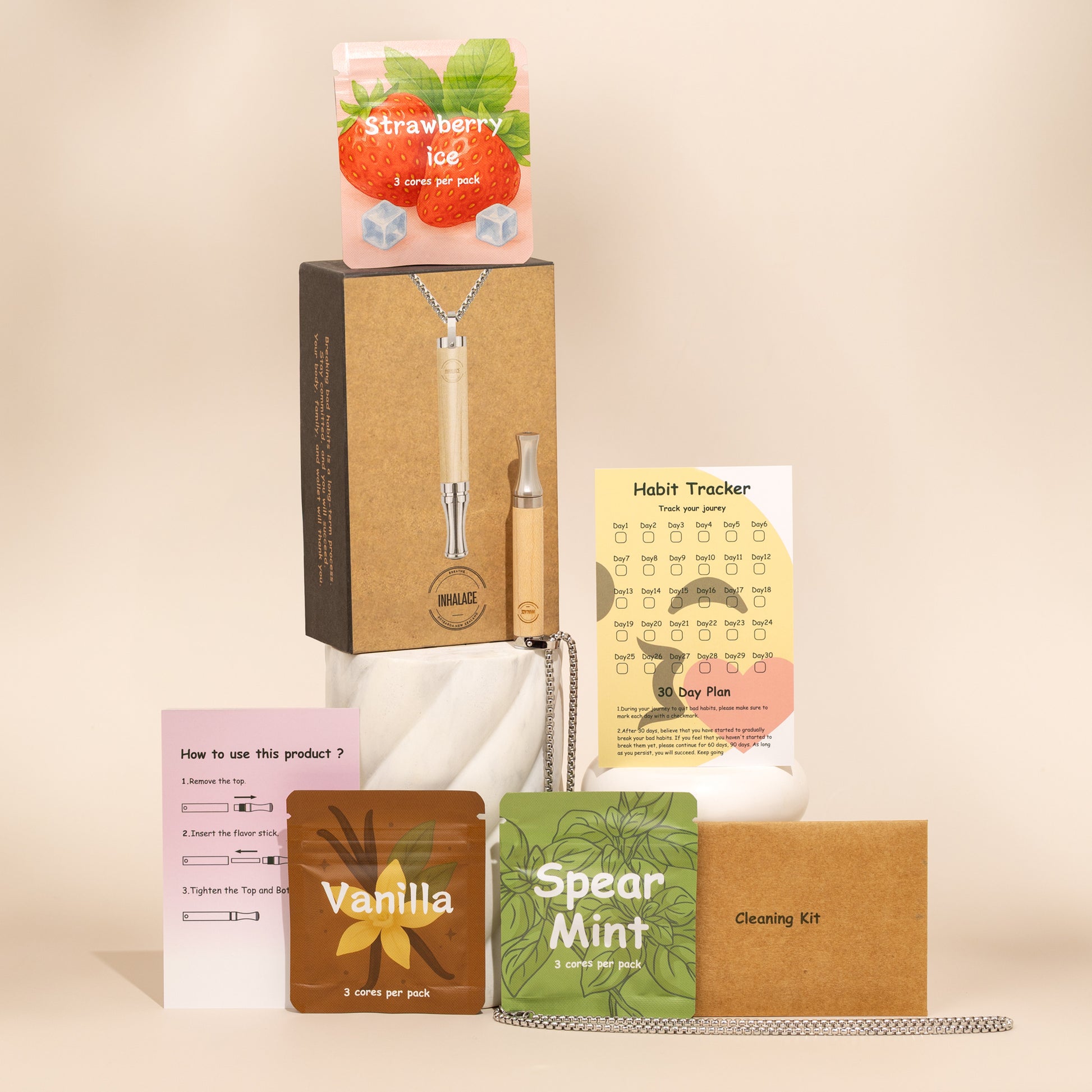 The Inhalace offers a healthier alternative to smoking and vaping by mimicking their inhalation and exhalation patterns. This substitution approach effectively replaces the addictive cycle of craving, action, and response with a beneficial habit, aiding in overcoming addiction.